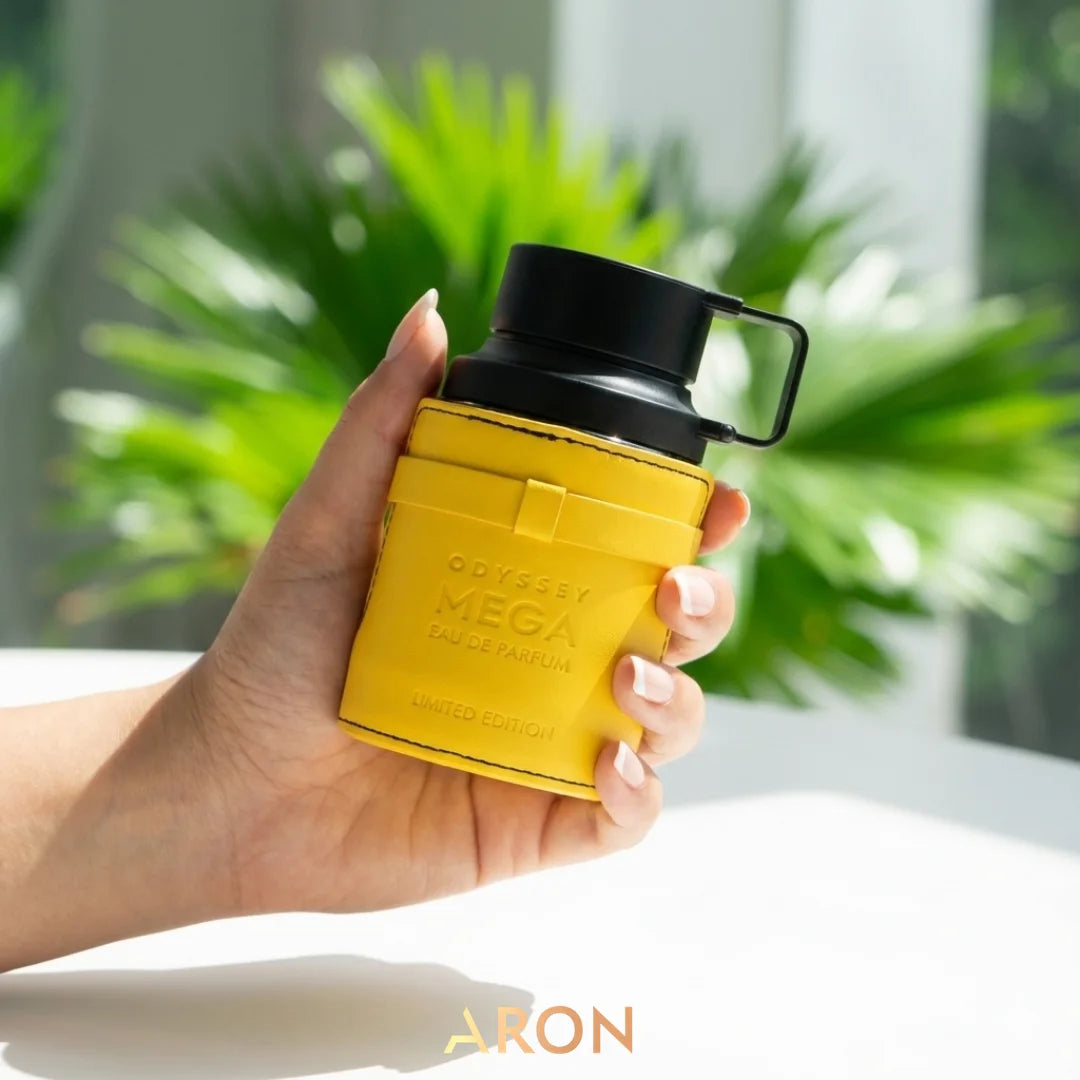 Odyssey Mega Man arranca con una chispa de naranja, bergamota, limón, jengibre y un toque de menta — una apertura cítrica-fresca que despierta los sentidos desde el primer spray.